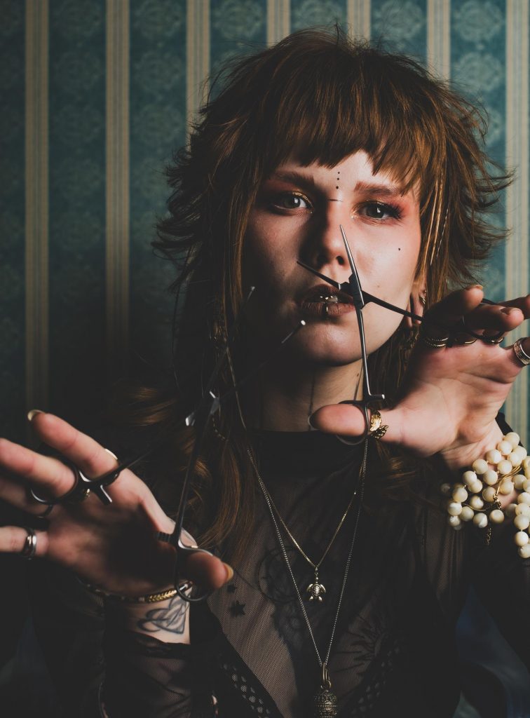 Hi! Ich bin Kaja. .. und ich muss euch hier jetzt was über mich erzählen, damit ihr mich ein bisschen kennen lernen könnt. Schon seit meinem 15ten Lebensjahr hatte ich eine Wunschvorstellung von meinem beruflichen Leben. Ich wusste schon immer, dass eine Tätigkeit alleine mich nicht erfüllen könnte. Deshalb träumte ich von einem all-in-one Geschäft, welches viele verschiedene Dinge vereint. In meiner Vorstellung kombinierte ich Tattoo und Piercing mit Mode und Kunst. Ich wünschte mir einen Laden, der nicht bloß eine Verkaufsfläche ist, sondern ein Ort, Menschen aus verschiedenen Bereichen zusammen kommen und sich wohlfühlen können. 2014 habe ich meine Ausbildung zur zertifizierten Bodypiercerin bei Pleasurable Piercings in Basel, CH absolviert, 2015 tourte ich mit der Firma Lucky Diamond als Festival-Piercerin durch Deutschland, Österreich und Belgien. Als ich 2016 nach Kassel zog, begann ich eine Stelle im Club A.R.M. und blieb dort bis zur Schließung des Clubs. Anschließend tingelte ich eine Zeit lang durch die Weltgeschichte, um mir darüber klar zu werden, wohin ich in meinem Leben will. In dieser Zeit brachte ich mir selbst das tattoowieren nach der Handpoke-Methode bei und entdeckte meine Liebe zur Mode, besonders in Bezug auf Nachhaltigkeit und Upcycling. 2020 begann ich dann eine Ausbildung zur Schneiderin, welche ich 2022 erfolgreich abgeschlossen habe. Im Anschluss arbeitete ich in einem kassler Piercingstudio, in welchem ich im Sommer 2024 gekündigt habe, um mit Liebe, Kraft und Herzblut gemeinsam mit Niki das UNiKAT zu gründen.